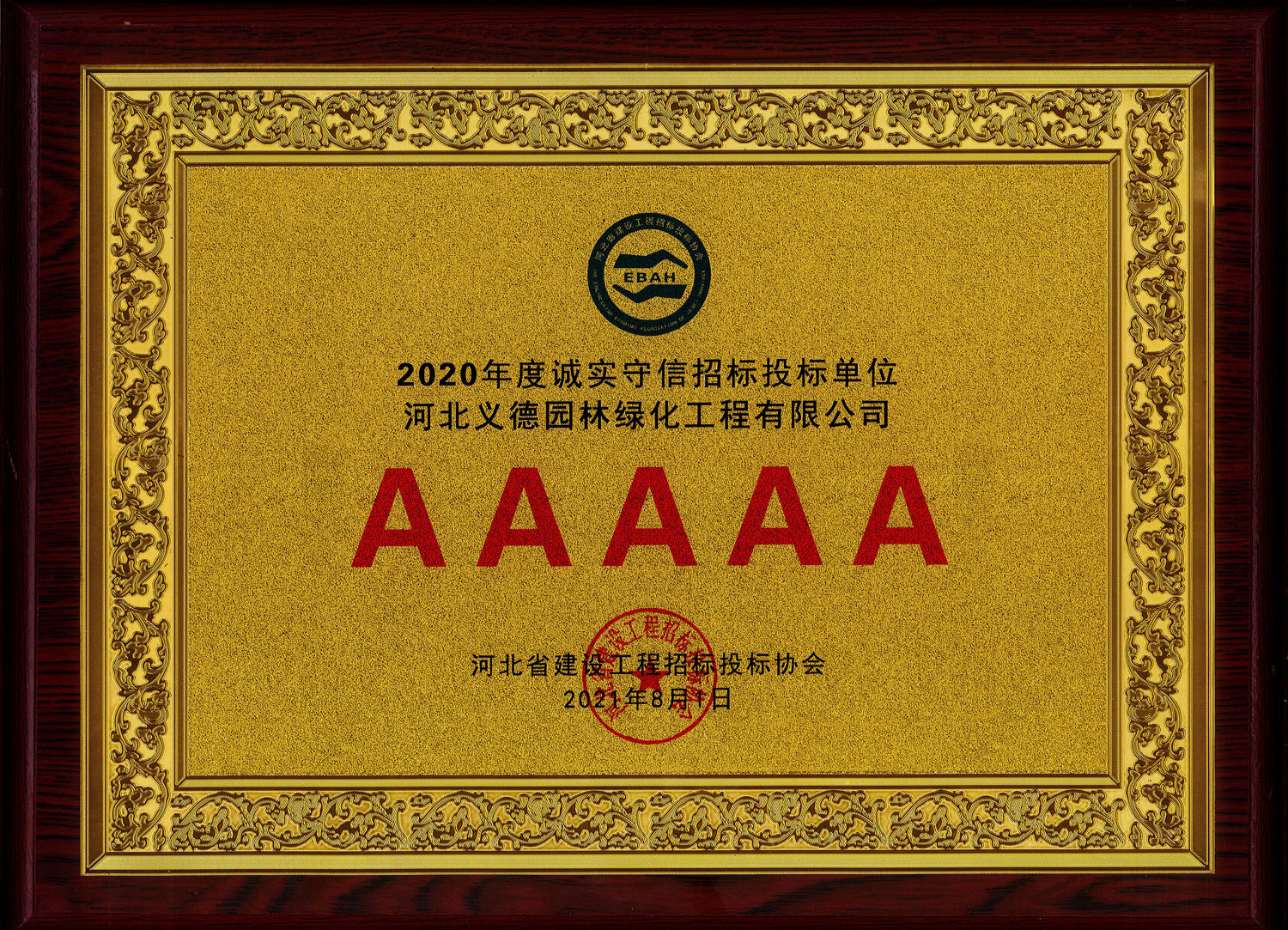 近幾年來我公司被授予2019年-2022年河北省扶貧龍頭企業、2018年國家林業標準化示范企業、2019年度全國苗圃50強、2018-2019年度河北省林業重點龍頭企業、2018年保定市精品特色現代農業園區、2018年度保定林木種苗協會授予特色苗圃、2018年度北方十佳特色苗圃、2016-2019年河北省建設工程招標投標誠實守信5A級施工企業等榮譽稱號,2017年保定市林木種苗龍頭企業、石家莊市2017年度優秀園林企業。